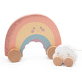 Encourage baby’s first steps with these friendly wooden pull-along toys. Featuring chunky wheels and a pastel-coloured rainbow and cloud design, they offer both companionship and coordination as little ones take them on adventures around the house. The baby cloud can be pushed along separately for added play value.